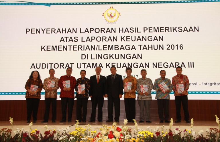 Penyerahan LHP ini secara resmi diterima oleh Sekretaris Mahkamah Agung RI S. S. Pudjoharsoyo, SH., M. Hum. dari Anggota AKN III Badan Pemeriksa Keuangan RI Prof. Dr. Eddy Mulyadi Soepardi. Pada acara Penyampaian opini laporan hasil pemeriksaan atas laporan keuangan Kementerian dan Lembaga Negara tahun 2016. (ds/mt)