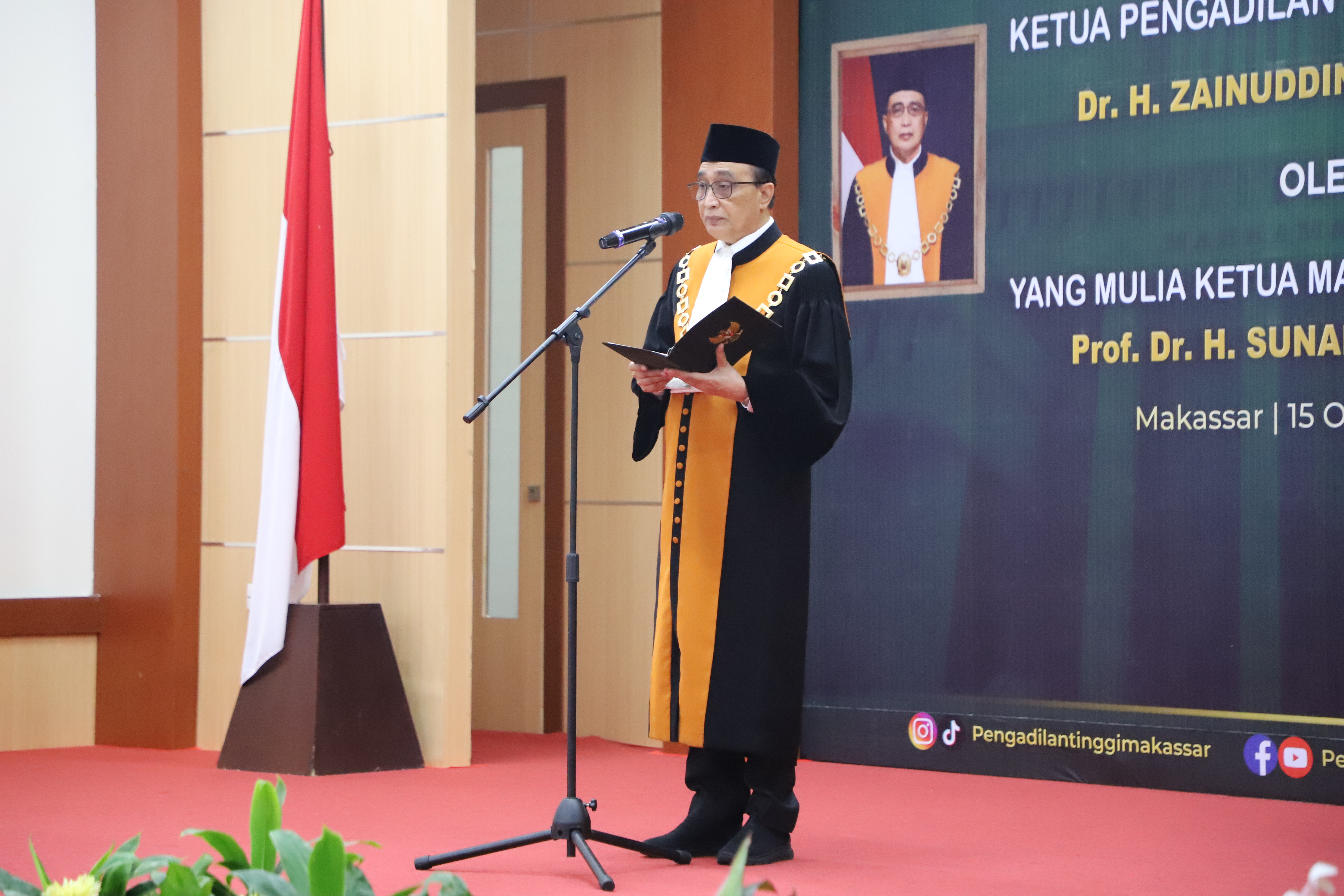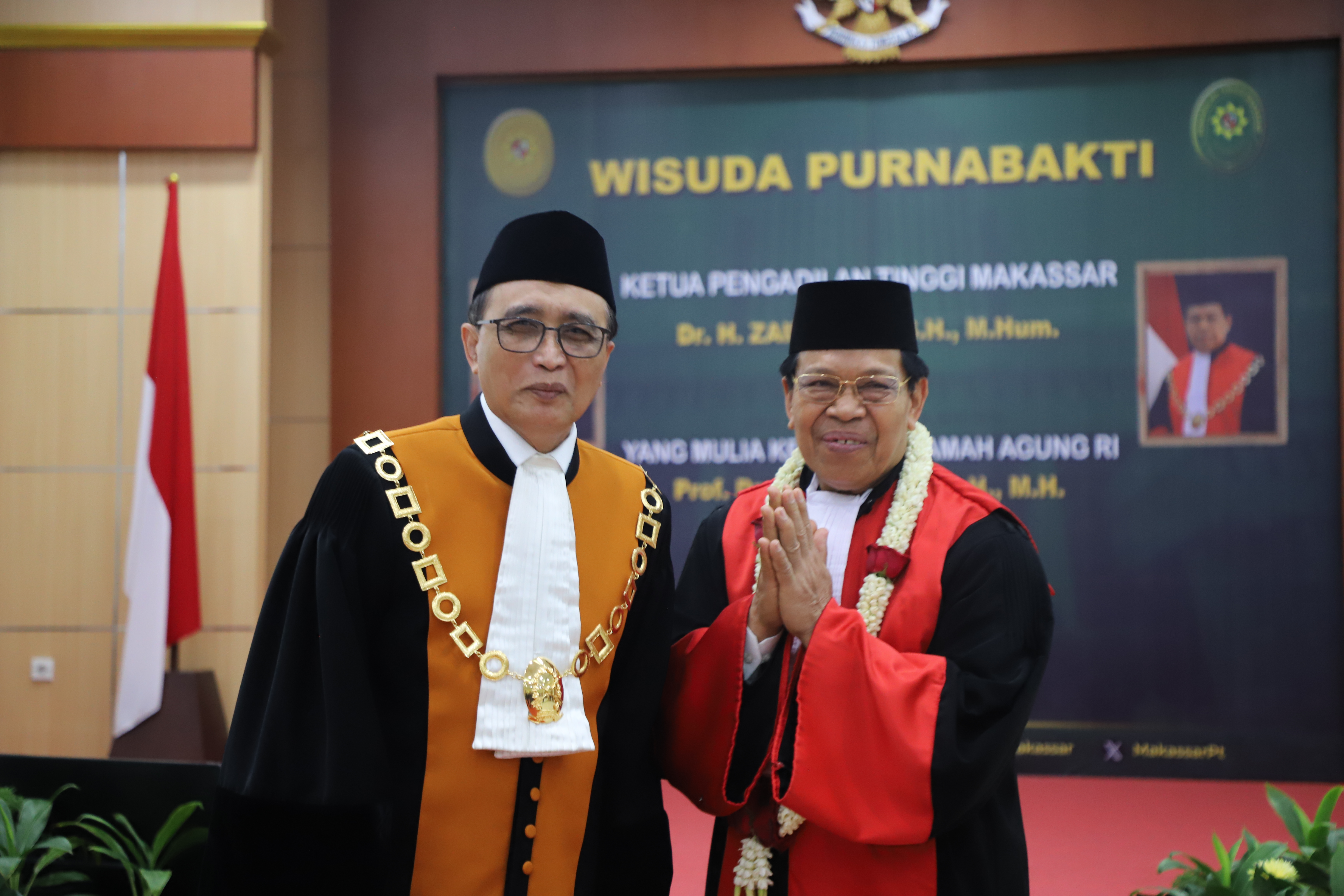 Makassar-Humas: Ketua Mahkamah Agung RI, Prof. Dr. H. Sunarto, S.H., M.H. melepas Ketua Pengadilan Tinggi Makassar, Dr. H. Zainuddin, S.H., M.Hum. yang telah memasuki masa purnabakti per Oktober 2025.
