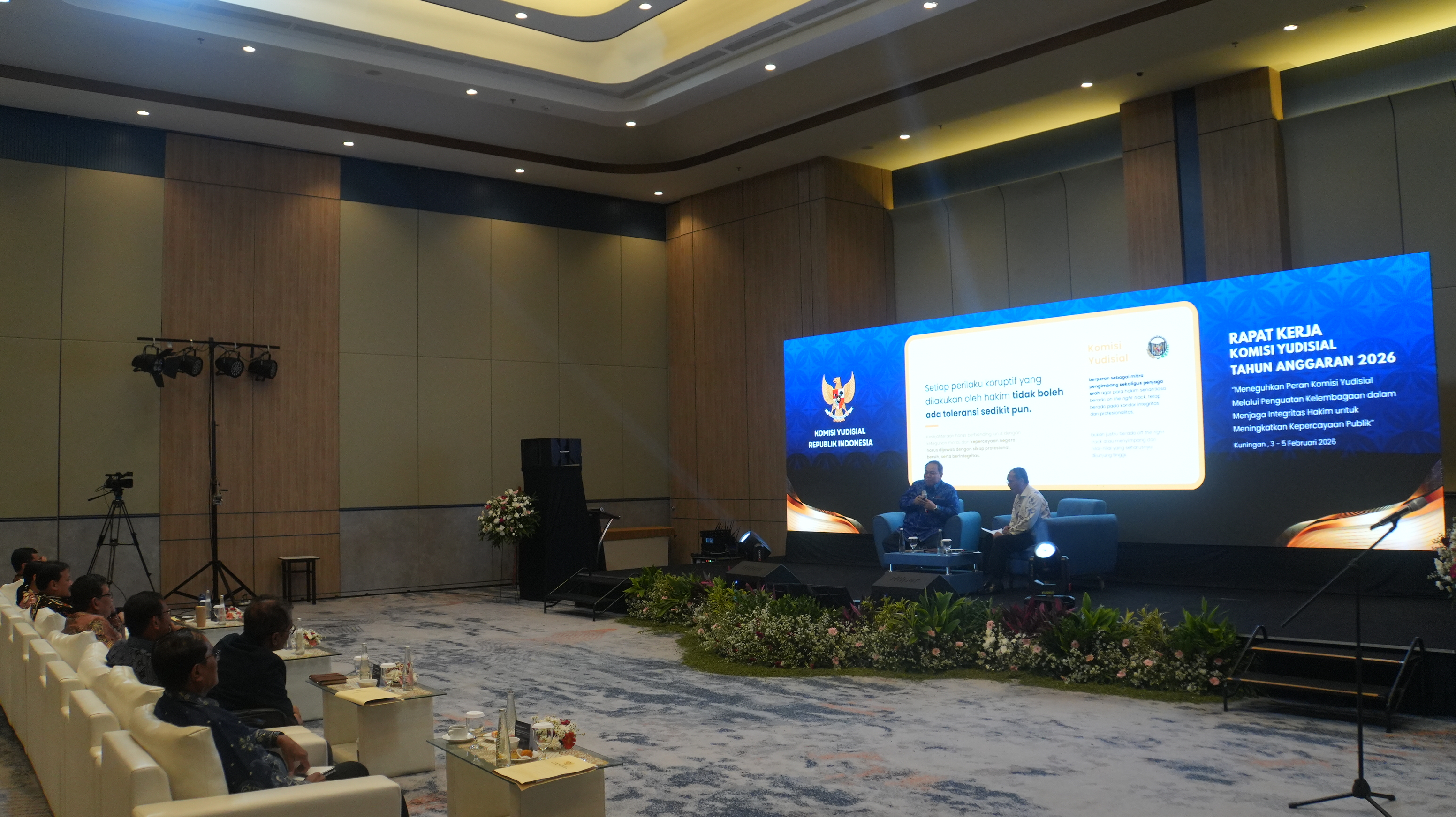 Humas - Kuningan: Wakil Ketua Mahkamah Agung (MA) Republik Indonesia Bidang Non Yudisial, Suharto, S.H., M.Hum. mewakili Ketua Mahkamah Agung menghadiri Rapat Kerja Komisi Yudisial (KY) Tahun 2026 yang diselenggarakan di Kuningan, Jawa Barat pada Rabu (4/2). Kehadiran Mahkamah Agung dalam forum tersebut menjadi wujud komitmen dalam memperkuat sinergi dan koordinasi kelembagaan dengan Komisi Yudisial.