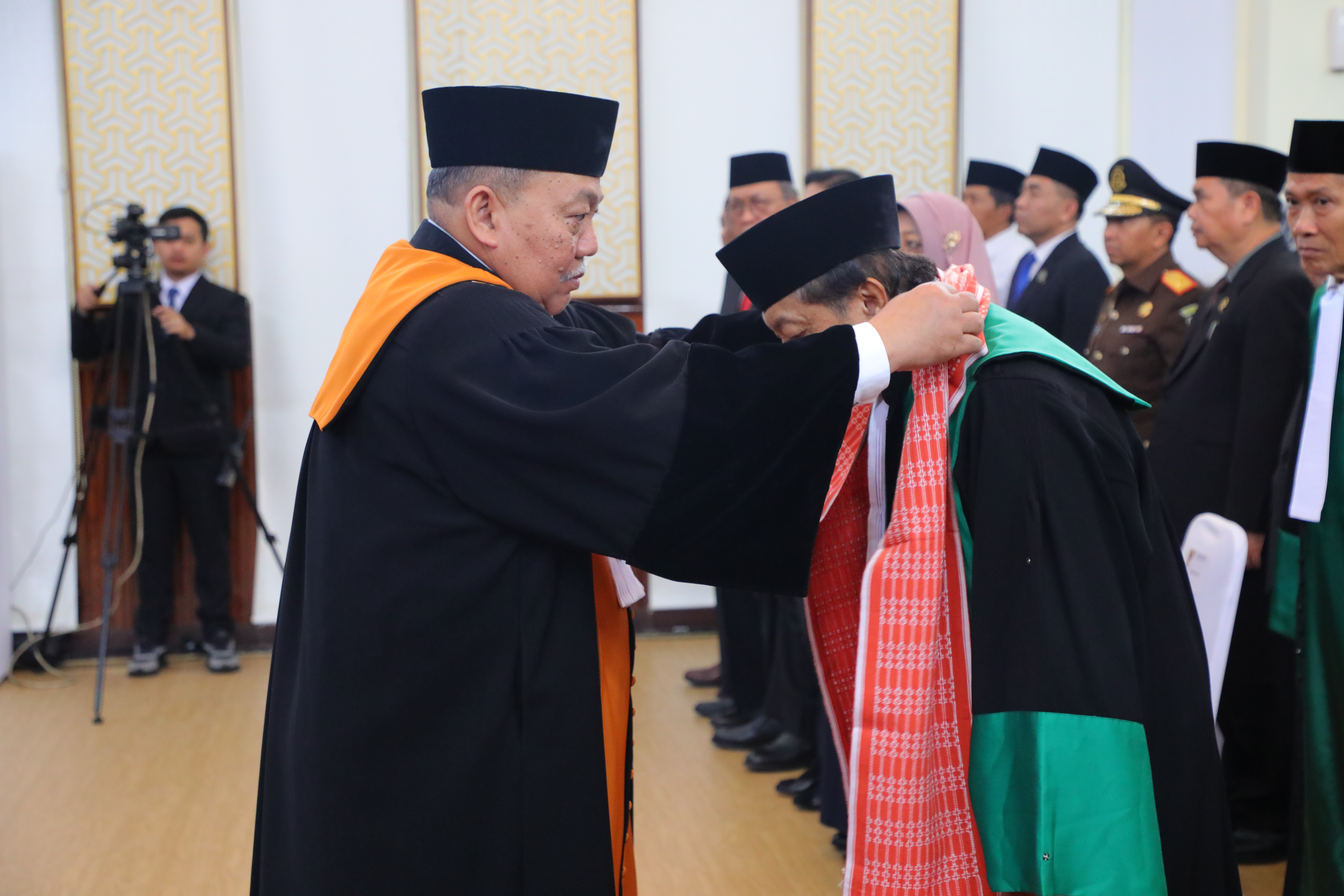 Serang – Humas. Wakil Ketua Mahkamah Agung Bidang Yudisial, H. Suharto, S.H., M.Hum., memimpin prosesi wisuda purnabakti Ketua Pengadilan Tinggi Agama Banten, Dr. Yusuf Buchori, S.H., M.S.I., yang telah memasuki masa purnabakti setelah mengabdikan diri selama 42 tahun di lingkungan peradilan agama. Prosesi purnabakti tersebut diselenggarakan di Aula Lantai 2 Pengadilan Tinggi Agama Banten, Serang, pada Rabu (25/2).